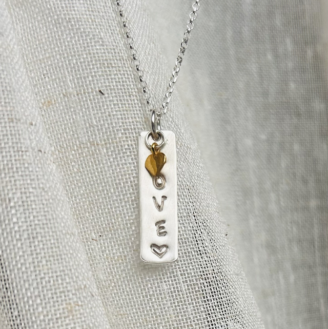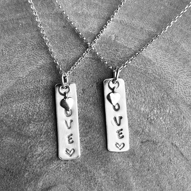 Brushed silver love necklace