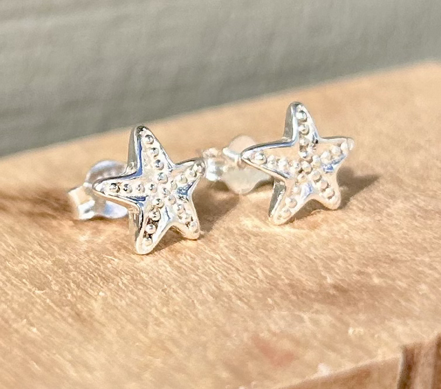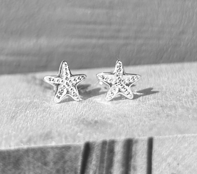 Sterling silver sea stars—small, shiny, and full of beach day vibes.