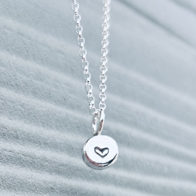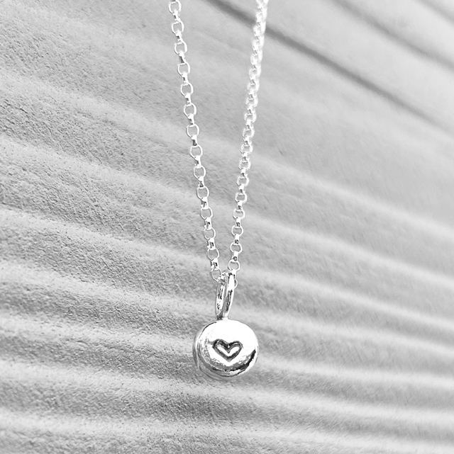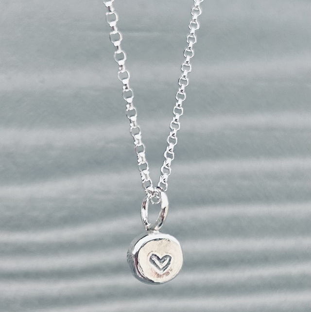 A little drop of love — this dainty necklace features a sweet heart stamped onto a silver droplet, perfect for everyday wear or gifting someone special